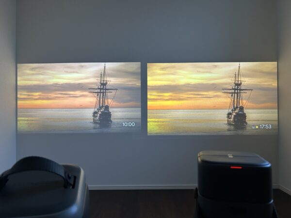 ただ、使用環境が明るくなるとか、少し厳しくなると価格差が見えてきます。遮光すれば十分楽しめる。けれど、少し光が入る状態だと、P1のほうが余裕があります。